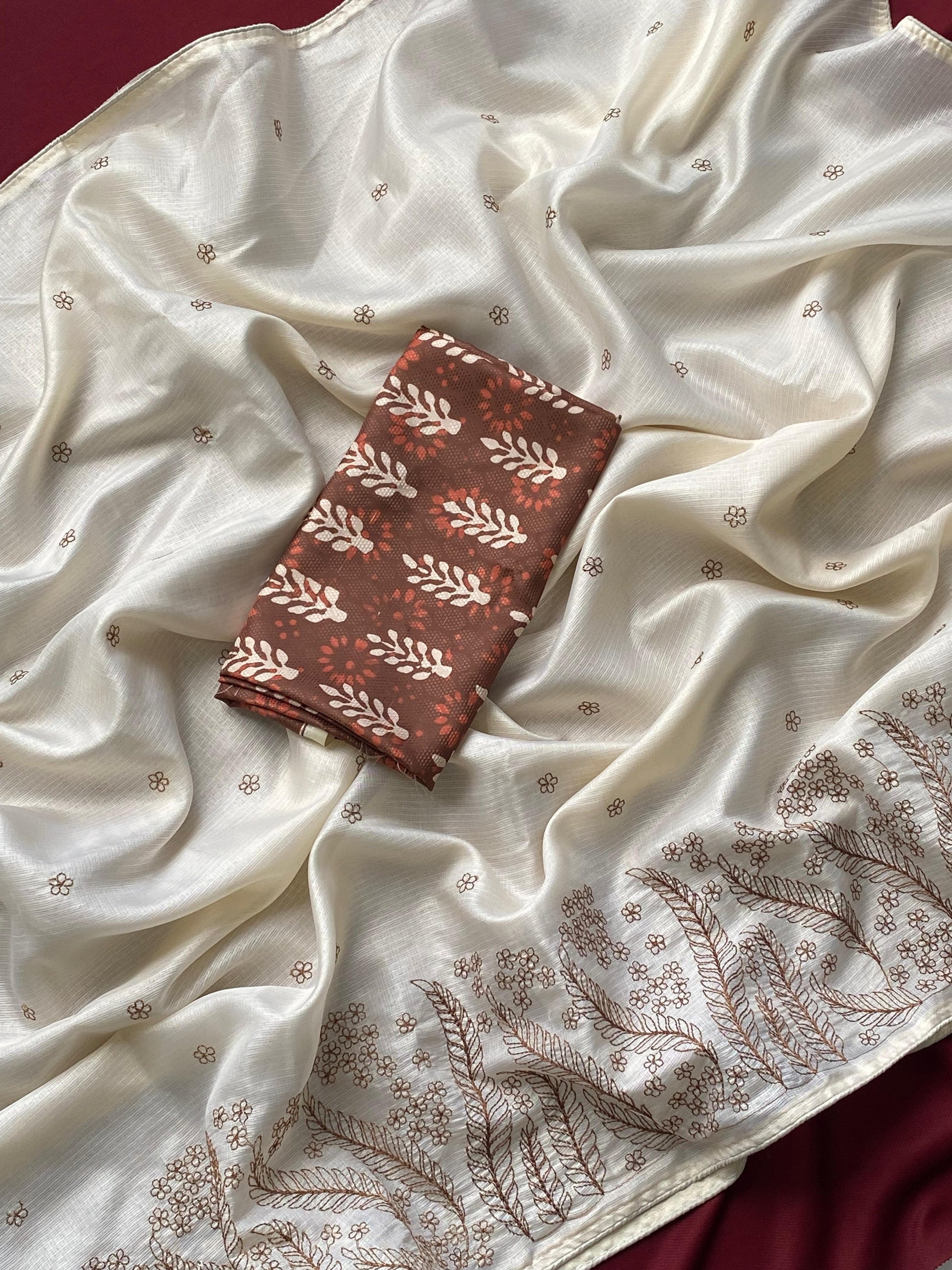✨ Blouse: Comes with a stunning contrast blouse featuring charming floral prints, perfectly complementing the saree.