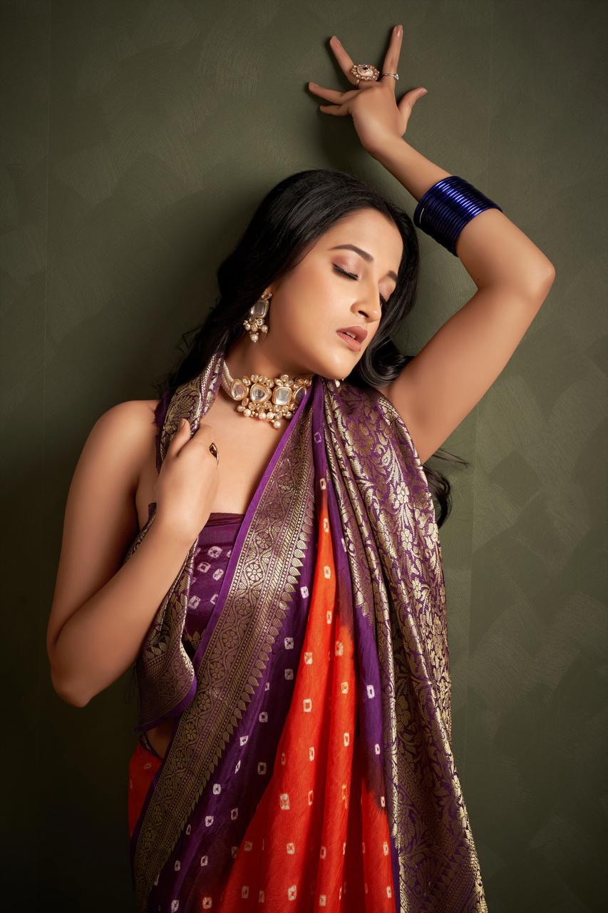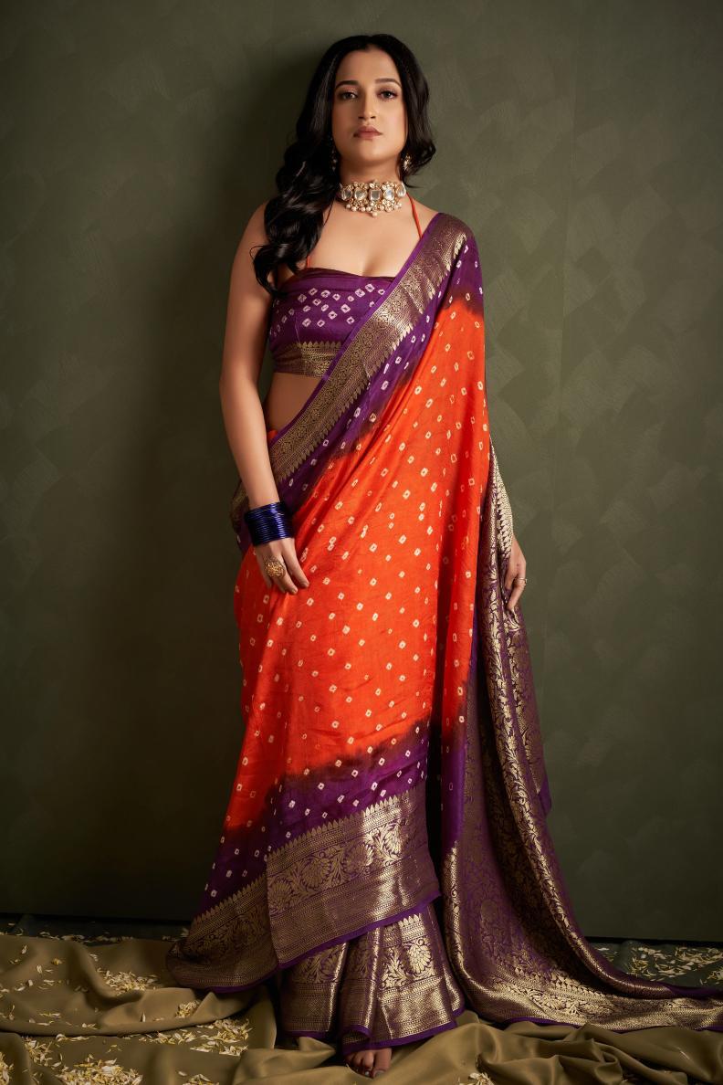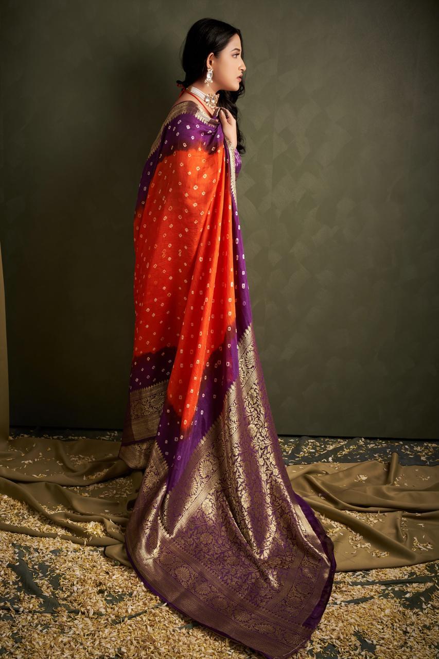 Step into timeless elegance with our new premium-quality Bandhej Silk Sarees, featuring: